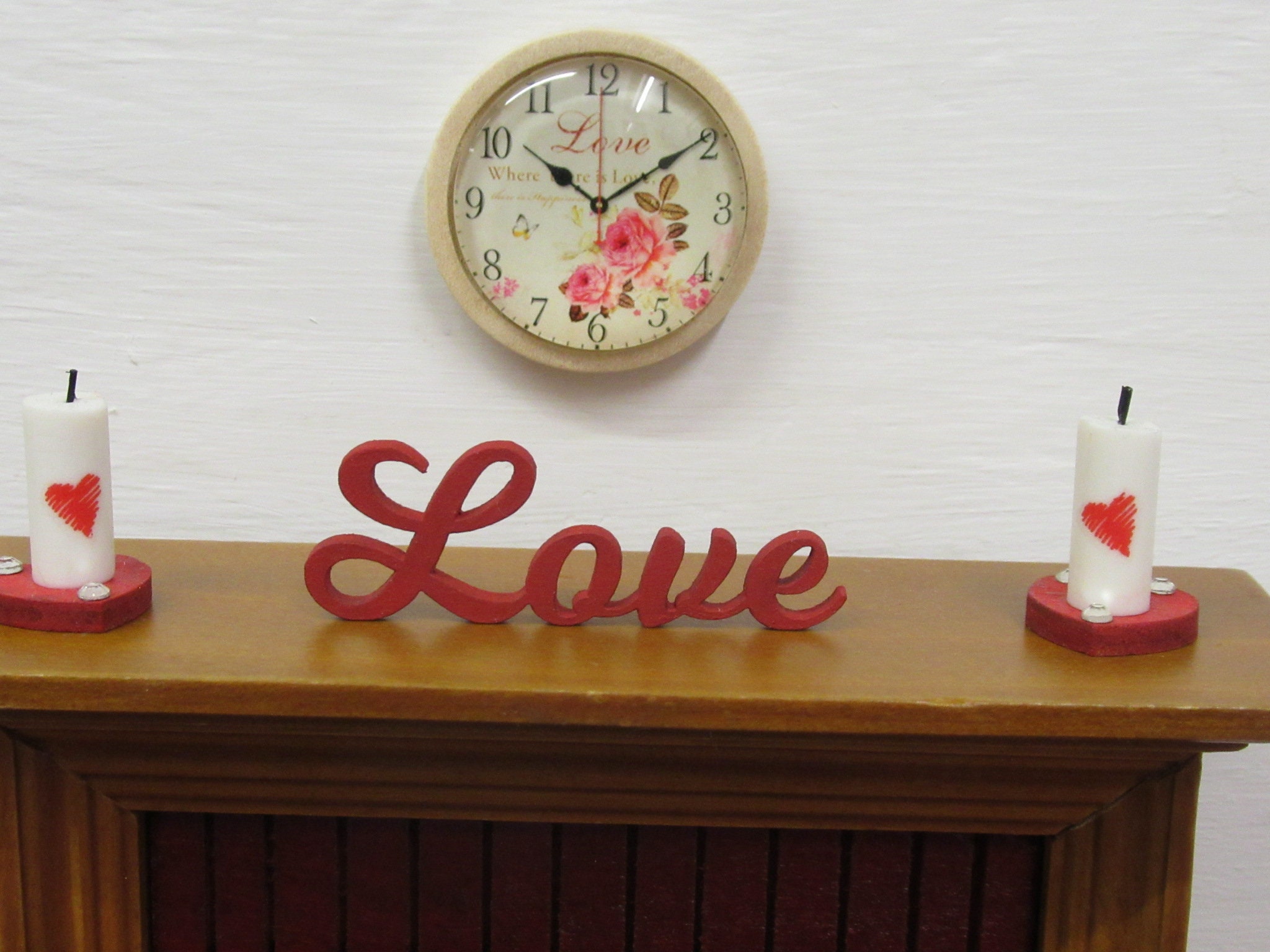 Dolls House Miniature Clock in a Wood Frame Love Vintage Theme 1:12th Scale Accessories